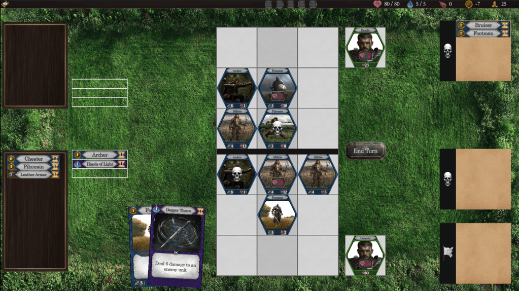 Assemble an army and conquer the kingdom in a roguelike deckbuilder. Recruit new units and learn new spells as you defeat rival lords. Unlock powerful upgrades to make your army more fearsome. But be careful, death is permanent so take care not to suffer too many losses.